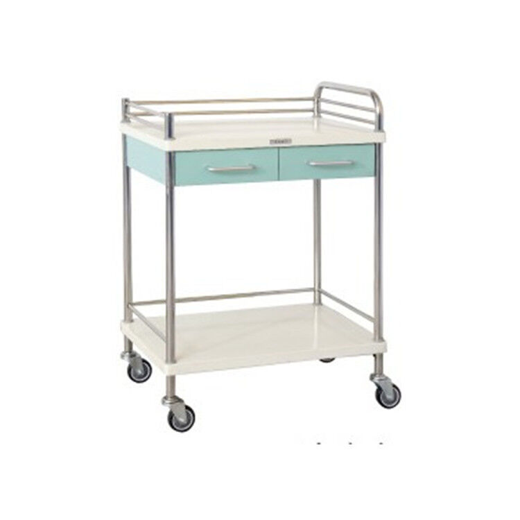 হাসপাতাল এবং চিকিৎসা সুবিধার জন্য ডিজাইন করা উচ্চ-মানের স্টেইনলেস স্টিলের ক্লিনিক্যাল ট্রলি। এতে টেকসই স্টিলের ফ্রেম রয়েছে, যার উপরে স্টেইনলেস স্টিলের রেলিং, একটি ড্রয়ার এবং স্থিতিশীলতা ও চলাচলের জন্য ক্রস ব্রেক সহ চারটি চাকা রয়েছে।